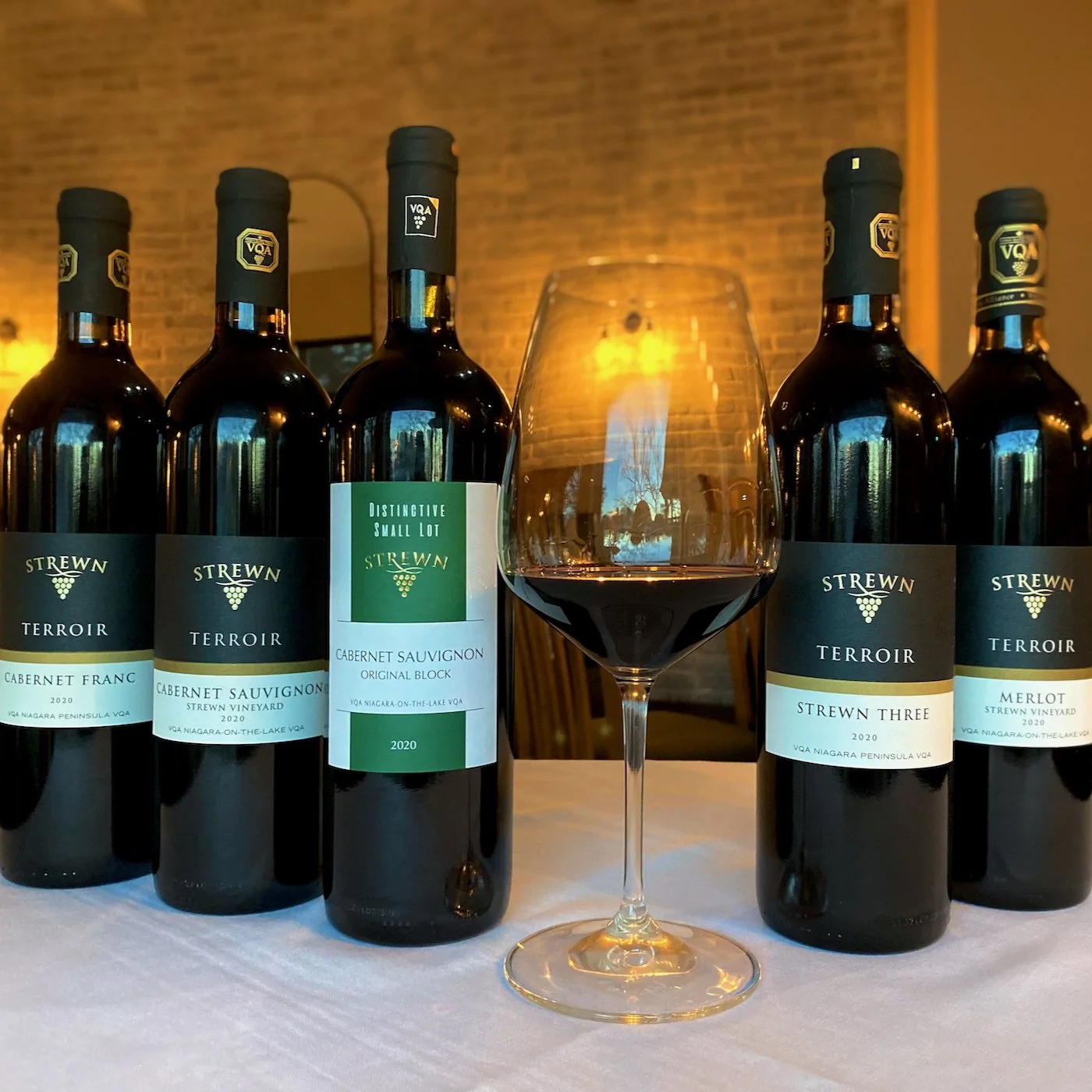 Crafted in Terroir STREWN ONLY MAKES THE WINES IT DESIGNATES ‘TERROIR’ IN EXCEPTIONAL VINTAGES. 2020 WAS ONE OF THOSE YEARS. Thanks to the guests who joined us for our chef’s five-course tasting dinner menu, accompanied by five of Strewn’s 2020 top-tier red wines. The Menu Red Wine Pairing Menu Saturday, November 23, 2024 LAYERED EGGPLANT, RED PEPPER AND ASIAGO TERRINE WITH TOMATO SAUCE I Terroir Cabernet Franc (2020) LAYERED EGGPLANT, RED PEPPER AND ASIAGO TERRINE WITH TOMATO SAUCE CREAMY SPINACH & MUSHROOM SOUP WITH TRUFFLED BRIE CROSTINI II Distinctive Small Lot Cabernet Sauvignon Original Block (2020) CREAMY SPINACH & MUSHROOM SOUP WITH TRUFFLED BRIE CROSTINI PALATE CLEANSER ROAST VENISON LOIN OR MUSHROOM & CHEESE NUT LOAF, BRAISED FALL VEGETABLES & HERBED POTATO PAVE III Terroir Cabernet Sauvignon (2020) ROAST VENISON LOIN OR MUSHROOM & CHEESE NUT LOAF, BRAISED FALL VEGETABLES & HERBED POTATO PAVE LOCAL CHEESE: NIAGARA GOLD, 5-YEAR OLD CHEDDAR WITH FIG & APPLE JAM AND CROSTINI IV Terroir Strewn Three (2020) LOCAL CHEESE: NIAGARA GOLD, 5-YEAR OLD CHEDDAR WITH FIG & APPLE JAM AND CROSTINI DOUBLE CHOCOLATE FINALE V Terroir Merlot (2020) DOUBLE CHOCOLATE FINALE